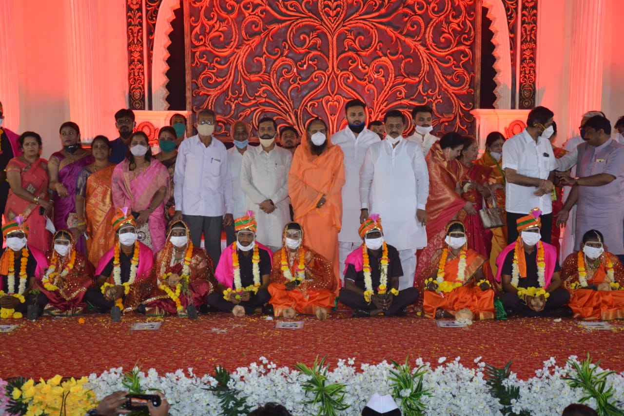 सोलापूर (प्रतिनिधी) रविवारी सायंकाळी सूर्य अस्ताला जात असताना……. लगीन घाई सुरू… 33 जोडपी कपाळाला बाशिंग आणि विशेष म्हणजे मास्क लावून मंचावर आली… या जोडप्यांना कुठलाच धर्म नव्हता, आयुष्यभर साथ देण्यासाठी… त्यांच्या रेशीमगाठी बांधल्या लोकमंगल ङ्गौंडेशनतर्ङ्गे आयोजित करण्यात आलेला 31 वा सर्वजातीय सामुदायिक विवाह सोहळ्यात. याचे साक्षीदार होण्यासाठी विविध स्तरातील मान्यवरही आले होते.