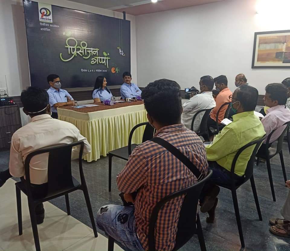 सोलापूर,दि.२ : प्रिसिजन फाउंडेशनच्या वतीने येत्या ६, ७ आणि ८ नोव्हेंबर २०२० रोजी ‘प्रिसिजन गप्पा’ आयोजिण्यात आल्या आहेत. या कार्यक्रमाचे यंदा १२ वे पर्व असून सोलापूरकरांना गप्पांची दिवाळी यंदा प्रिसिजन फाउंडेशनच्या फेसबुक पेजवरून ऑनलाईन अनुभवता येणार आहे. प्रिसिजन कॅमशाफ्ट्सचे चेअरमन श्री. यतिन शहा व प्रिसिजन फाउंडेशनच्या अध्यक्षा डॉ. सुहासिनी शहा यांनी पत्रकार परिषदेत यंदाच्या ‘प्रिसिजन गप्पा’बाबत माहिती दिली.