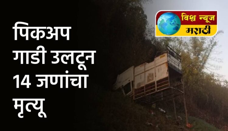 देशात गेल्या काही महिन्यापासून अपघाताची मालिका सुरु असतांना आज पहाटे मध्य प्रदेशच्या दिंडोरी येथे पिकअप गाडी उलटून 14 जणांचा मृत्यू झाला. तर 20 जण जखमी झाले आहेत. सर्व जखमींना सामुदायिक आरोग्य केंद्र शाहपुरा येथे दाखल करण्यात आले आहे. गाडीत सुमारे 45 जण होते. बिचिया पोलीस ठाण्याच्या हद्दीत गुरुवारी पहाटे 3 ते 4 च्या दरम्यान हा अपघात झाला. मृतांमध्ये 6 पुरुष आणि 8 महिलांचा समावेश आहे. सर्वांचे वय 16 ते 60 वर्षे दरम्यान आहे.
