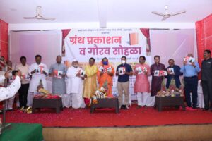 या सोहळ्यात लहान बालकांच्या माध्यमातून ग्रंथांची दिंडी मोठया भक्तीभावात हत्तीवरुन काढण्यात आली.त्यानंतर मान्यवरांच्या हस्ते ग्रंथाचे प्रकाशन करण्यात आले. यावेळी समर्थ नगरी प्रतिष्ठानच्यावतीने सेवा निवृत्ती निमित्त डॉ .पाठक यांचा नागरी सत्कार करण्यात आला.