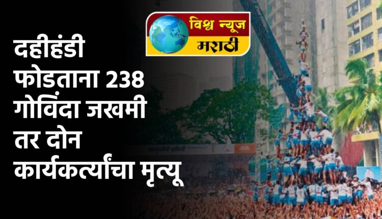 राज्यातील मुंबई शहरात दहीहंडीचा मोठा उत्साह सुरु असतांना कोसळणार्या पावसाच्या सरी, गोविंदांचा उत्साह वाढविण्यासाठी डीजेवरील ‘गोविंदा रे गोपाळा’, ‘मच गया शोर सारी नगरी’, ‘तुझी घागर उताणी रे गोपाळा’ या गाण्यांवर तरुणाईचा जल्लोष, अशा उत्साही वातावरणात मंगळवारी दहीहंडीचा सोहळा मुंबईसह राज्याभरात साजरा झाला. दरम्यान, मुंबईत दहीहंडी कार्यक्रमाला गालबोट लागले. थर लावताना २०६ गोविंदा जखमी झाले; तर वर्ध्यात दोन कार्यकर्त्यांचा शॉक लागून मृत्यू झाला. सुरज बावणे (वय 27) आणि सेजल बावणे (13) अशी मृतांची नावे आहेत. कल्याणमध्ये स्वागत कमानीचा भाग कोसळला.