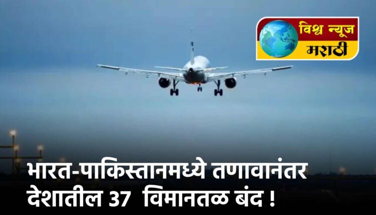 गेल्या चार दिवसापासून भारत-पाकिस्तानमध्ये तणावानंतर आता आठ राज्यांमधील 37 विमानतळ उद्या (शनिवार)पर्यंत बंद करण्यात आले आहेत. यामध्ये जम्मू आणि काश्मीर, हिमाचल प्रदेश, पंजाब, हरियाणा, राजस्थान, गुजरात, मध्य प्रदेश, उत्तर प्रदेशचा समावेश आहे गुरुवारी दिल्ली विमानतळावरील 90 उड्डाणे रद्द करण्यात आली.