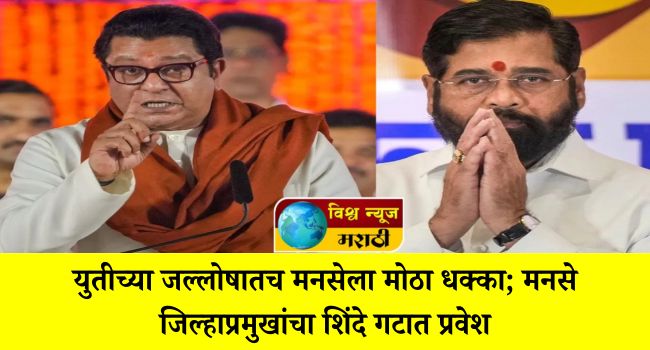 मुंबई वृत्तसंस्था : एकीकडे शिवसेना ठाकरे गट आणि महाराष्ट्र नवनिर्माण सेनेच्या ऐतिहासिक युतीची घोषणा होऊन राज्यभरात राजकीय चर्चांना उधाण आलं असतानाच, काही तासांतच मनसेला मोठा धक्का बसल्याचं चित्र समोर आलं आहे. आगामी महापालिका निवडणुकीच्या पार्श्वभूमीवर छत्रपती संभाजीनगरमध्ये मनसेचे जिल्हाप्रमुख सुमित खांबेकर यांनी शिवसेना शिंदे गटात प्रवेश केला आहे.