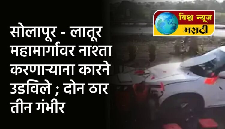 लातूर-सोलापूर महामार्गावरील एका हॉटेलमध्ये नाश्त्यासाठी बसलेल्या लोकांना एका कारने चिरडले आहे. वाहन चालकाचे कारवरील नियंत्रण सुटल्याने कार थेट हॉटेलमध्ये घुसल्याने हा अपघात घडला आहे. या अपघातात कारमधील दोन जणांचा जागीच मृत्यू झाला आहे. तर तीन जण गंभीर जखमी झाले आहेत. या अपघातातील तिघे गंभीर व्यक्तींची प्रकृती ही चिंताजनक असून त्यांच्यावर रुग्णालयात उपचार सुरू आहेत. या चित्तथरारक घटनेचा व्हिडीओ कॅमेऱ्यात कैद झाला असून तो व्हिडीओ सध्या समोर आला आहे.