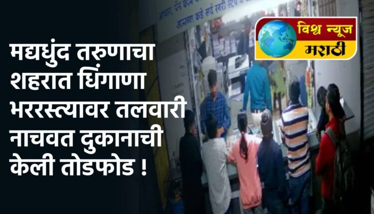 या संपूर्ण प्रकाराची माहिती मिळताच पोलिसांनी तातडीने घटनास्थळ गाठत तरुणाच्या मुसक्या आवळल्या. पोलिसांनी वेळीच धाव घेत या मद्यपी तरुणाला ताब्यात घेतल्याने नागरिकांनी सुटकेचा श्वास घेतला. भररस्त्यात घडलेल्या या घटनेमुळे परिसरात भीतीचं वातावरण पसरलं आहे. हा संपूर्ण परिसरातील सीसीटीव्ही कॅमेऱ्यात कैद झाला आहे. दामोदर चौक हा शहरातील गजबजलेला परिसर आहे. नेहमी याठिकाणी नागरिकांची गर्दी असते.अशातच सोमवारी सायंकाळच्या सुमारास एक मद्यपी तरुण चौकात आला. त्याने भररस्त्यात तलवार नाचवत दहशत माजवली. रस्त्यावरून जाणाऱ्या नागरिकांना तलवारीचा धाव दाखवत परिसरातील दुकानांची तोडफोड केली.