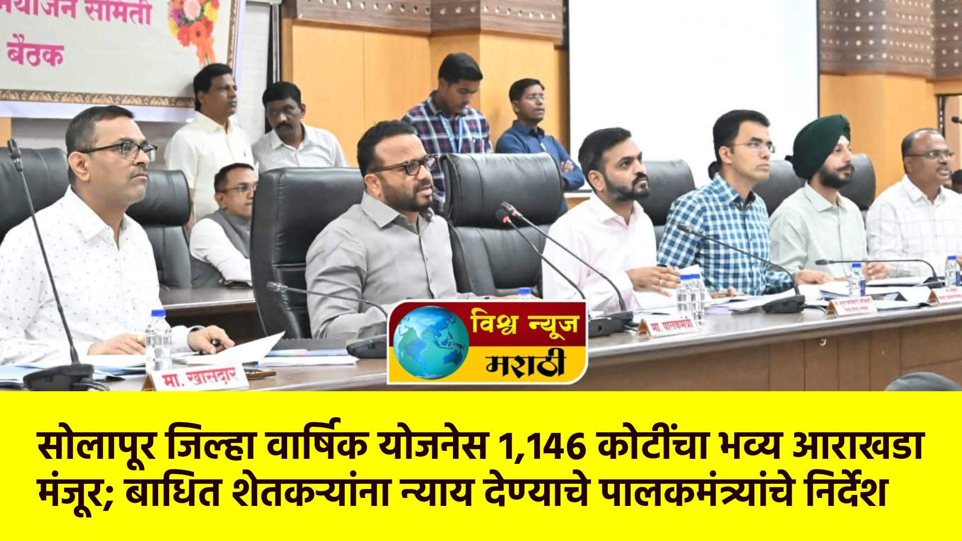 सोलापूर जिल्हा वार्षिक योजनेस १,१४६ कोटींचा भव्य आराखडा मंजूर; बाधित शेतकऱ्यांना न्याय देण्याचे पालकमंत्र्यांचे निर्देश