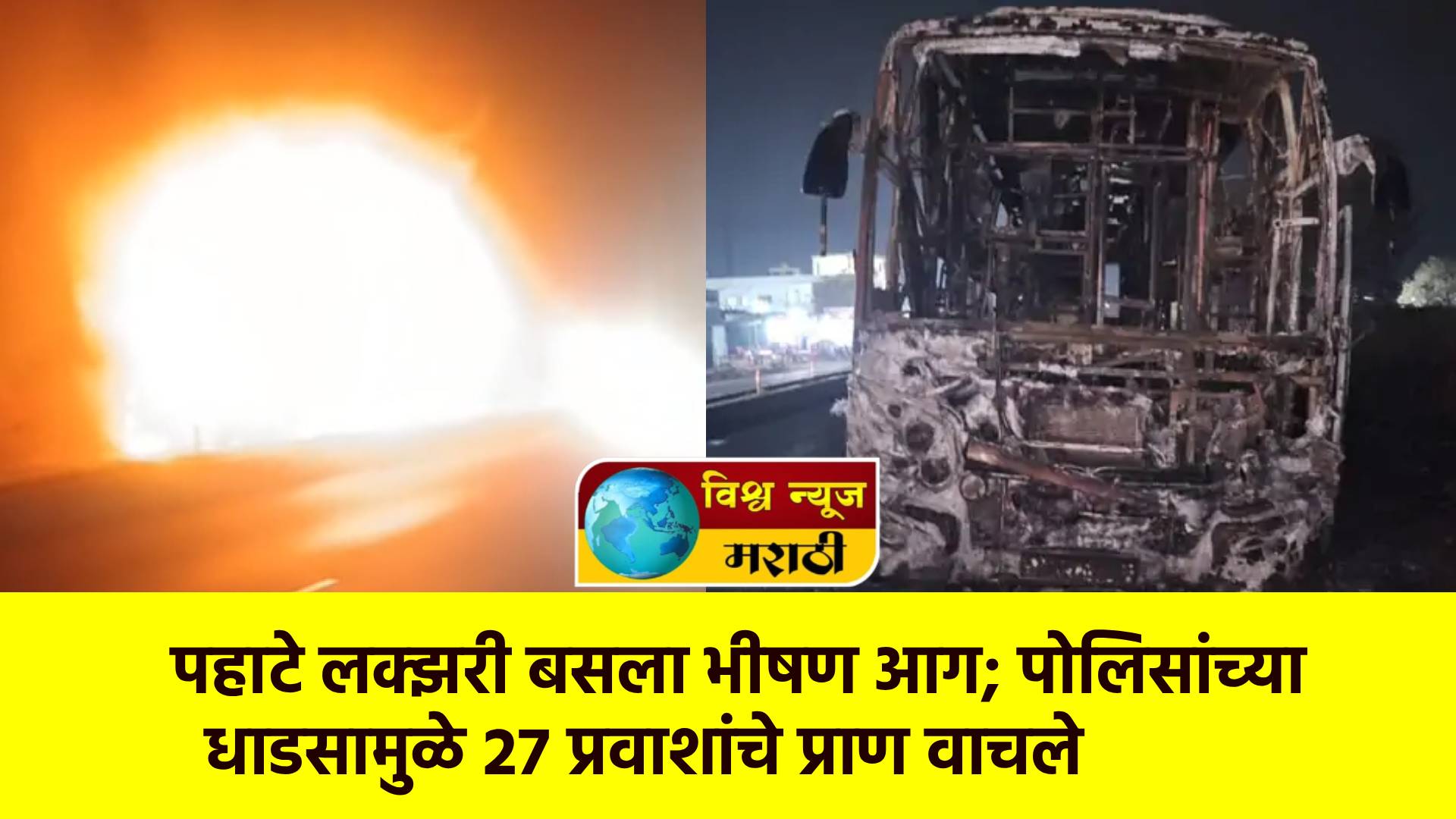 पुण्याकडून यवतमाळच्या दिशेने २७ प्रवाशांना घेऊन जाणाऱ्या चिंतामणी ट्रॅव्हल्सच्या लक्झरी बसला (MH-29 AW 4444) आज पहाटे सुमारे तीन वाजता भीषण आग लागली. जालना–छत्रपती संभाजीनगर मार्गावरील बदनापूर तालुक्यातील शेळगाव येथील पेट्रोल पंपासमोर ही धक्कादायक घटना घडली. बसचे टायर फुटल्याने लागलेल्या या आगीत बस पूर्णपणे जळून खाक झाली; मात्र पोलिसांच्या तत्परतेमुळे सर्व २७ प्रवासी सुखरूप बचावले.