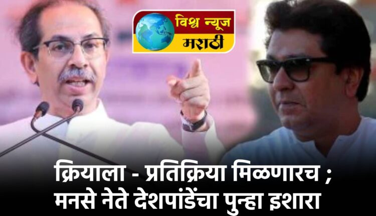 तसेच तुमच्याकडे बाळासाहेबांचे विचार असतील तर आमच्याकडे पण आहेत असे देशपांडे म्हणाले. ”एखादी गोष्ट सुरूवात करताना पुढे काय परिणाम होईल याचा विचार करायचा असतो. दुसऱ्याने काही केल्यानंतर मग शहाणपणा शिकवायला जायचे नसते. तुम्ही शिवसैनिक असाल तर आम्ही मनसैनिक आहोत. तुमच्याकडे बाळासाहेबांचे विचार असतील तर आमच्याकडेही बाळासाहेबांचे विचार आहेत. तुम्ही आरे केले तर आम्ही कारे करणारच”,असे संदीप देशपांडे यांनी म्हटले.