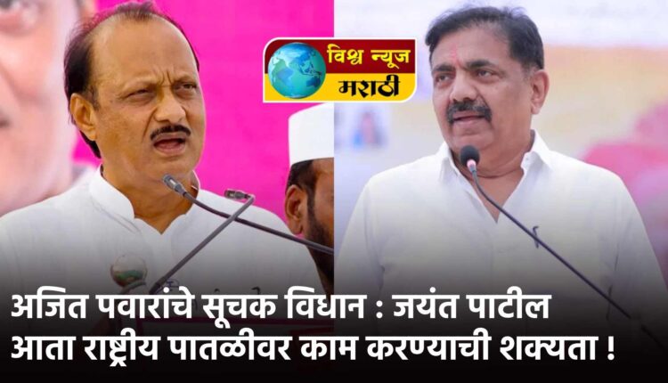 अजित पवारांचे सूचक विधान : जयंत पाटील आता राष्ट्रीय पातळीवर काम करण्याची शक्यता !