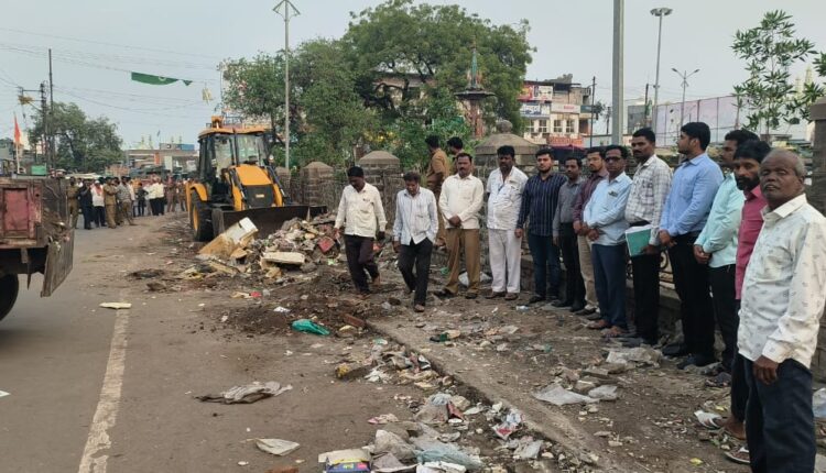 अक्कलकोट, दि.1 : अक्कलकोट नगरपालिकेच्यावतीने तारामाता उद्यानाच्या भोवतालचे सुमारे 102 खोकी अतिक्रमण विभागाच्या पथकाने काढली. या पथकात 1 जेसीबी, 2 ट्रॅक्टर, नगरपालिका आरोग्य विभागाचे 25 कर्मचारी, एसमएसईबीचे अधिकारी कर्मचारी, पोलिस बंदोबस्तामध्ये अतिक्रमण काढण्यात आली. बुधवार दि.2 नोव्हेंबर 2022 रोजी सकाळी 10 वा. पुन्हा सुरु होणार असल्याचे माहिती नगरपालिका बांधकाम विभागाकडून सांगण्यात आले.
