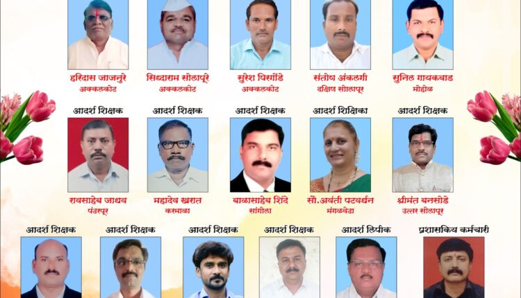 अक्कलकोट, दि.१३ : सोलापूर जिल्हा माध्यमिक शिक्षक संघाच्या पुरस्कारांची घोषणा संघाचे अध्यक्ष भारत इंगवले व कार्याध्यक्ष मुकुंद साळुंके यांनी केली.यामध्ये जीवन गौरव ,आदर्श मुख्याध्यापक,आदर्श शिक्षक ,आदर्श लिपीक यांना पुरस्कार देऊन गौरविण्यात येणार आहे.या पुरस्काराचे वितरण शनिवार दि.१६ सप्टेंबर रोजी दुपारी १ वाजता अक्कलकोट येथे होणार आहे.या पुरस्काराचे वितरण आमदार