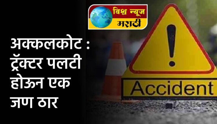 तालुक्यातील संगोळगी येथे वळणावर रस्त्याने पायी चालत येत असलेल्या मजुराच्या अंगावर ट्रॅक्टर पलटी झाल्याची घटना ३ मे रोजी रात्री एक वाजता घडली. मल्लीनाथ रामण्णा बंडगर (वय ३४, रा. चपळगांव, ता अक्कलकोट) असे अपघातात ठार झालेल्या मजुराचे नाव आहे.