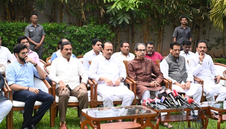 मुंबई दि. १५ डिसेंबर – सतत महापुरुषांबद्दल बेताल वक्तव्य आणि गरळ ओकण्याचे काम थांबायला तयार नाही त्यामुळे लोकांमध्ये प्रचंड असंतोष निर्माण झाला असून हा मोर्चा राजकीय पक्षाशी निगडित नसल्याने या महामोर्चाला राज्यातील सर्व जनतेने उपस्थित राहण्याचे आवाहन राज्याचे विरोधी पक्षनेते अजित पवार यांनी पत्रकार परिषदेत केले. आज महामोर्चाच्या आढाव्यासाठी महाविकास आघाडीतील नेत्यांची बैठक विरोधी पक्षनेते अजित पवार यांच्या शासकीय निवासस्थानी देवगिरी येथे पार पडली. त्यानंतर महाविकास आघाडीच्या नेत्यांनी माध्यमांशी संवाद साधला.