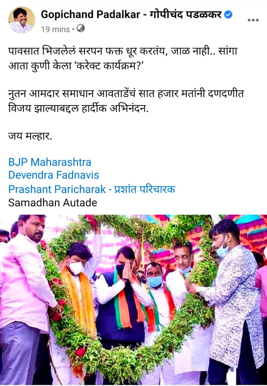 पंढरपूरच्या भाजपच्या विजयावर आमदार गोपीचंद पडळकर यांची प्रतिक्रिया सोलापूर जिल्हाराज्य By टीम विश्व न्यूज मराठी Last updated May 2, 2021 0 0 Share