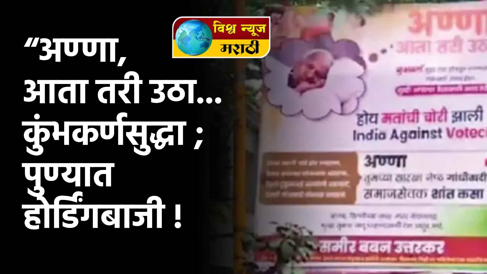 देशातील काँग्रेसचे नेते आणि लोकसभेतील विरोधी पक्षनेते राहुल गांधी यांनी निवडणूक आयोगाचा डेटा दाखवत मतांची चोरी झाल्याचे दाखवले. त्यावरून विरोधक आक्रमक होत रस्त्यावरदेखील उतरले. त्यावरून सत्ताधारी आणि विरोधकांमध्ये आरोप-प्रत्यारोप पाहण्यास मिळाले. या सर्व घडामोडीदरम्यान ज्येष्ठ समाजसेवक अण्णा हजारे यांना लक्ष्य करणारे होर्डिंग पुण्यातील पाषाण येथील रस्त्यावर लावण्यात आले आहे.