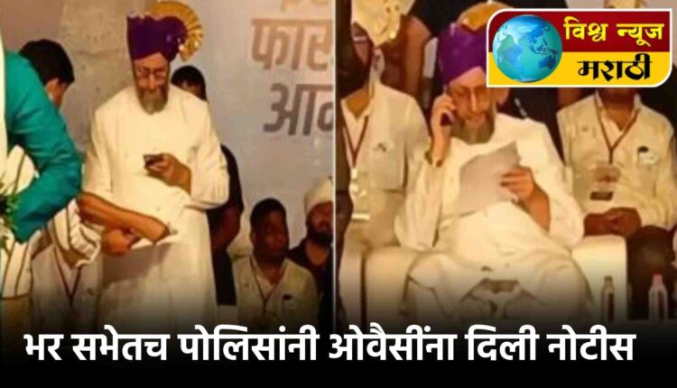 बुधवारी (दि.१३) सोलापूर मध्य विधानसभा मतदारसंघाचे उमेदवार फारुख शाब्दी यांच्या प्रचारसभेला खासदार असदुद्दीन ओवैसी आले होते. त्यावेळी इतरांचे भाषण सुरू असतानाच सोलापूर पोलिसांनी त्यांना स्टेजवरच नोटीस दिली. असदुद्दीन ओवैसी यांनी आपल्या भाषणात कोणत्याही समाजाच्या भावना दुखावणार नाही, अशी प्रक्षोभक भाषा वापरू करू नये अशी नोटीस पोलिसांनी दिली. भारतीय नागरिक संहिता कलम १६८ प्रमाणे पोलिसांनी ही नोटीस दिल्याची माहिती आहे.