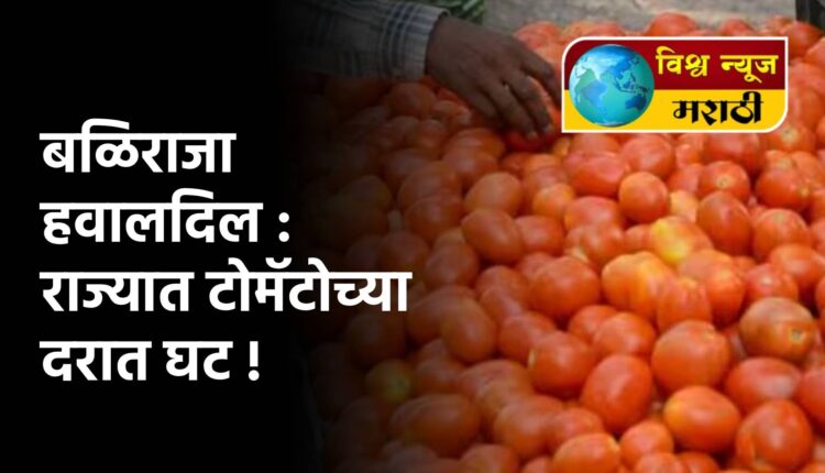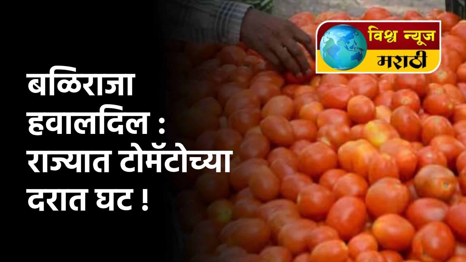 देशासह अनेक भागातील बाजार समितींच्या आवारात टोमॅटोंची मोठ्या प्रमाणात आवक झाल्याने टोमॅटोच्या दरात घट झाली आहे. परिणामी पुणे येथील मार्केटयार्ड फळबाजारातही फटका बसला आहे. पुणे घाऊक बाजारात एक किलो टोमॅटोला प्रतवारीनुसार चार ते पाच रुपये किलो, तर किरकोळ बाजारात एक किलोला १० ते १५ रुपये भाव मिळत असल्याने बळिराजा हवालदिल झाला आहे.