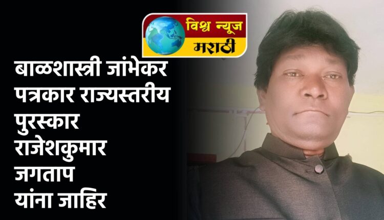 दैनिक जनमतचे तालुका प्रतिनिधी राजेशकुमार जगताप यांना राज्यस्तरीय पुरस्कार जाहिर झाला .महाराष्ट्र राज्य पत्रकार संघ, मुंबई व पत्रकार हल्ला विरोधी कृती समिती यांच्या वतीने आचार्य बाळशास्त्री जांभेकर पत्रकार भूषण पुरस्कार सोहळा २०२५ चे सोमवार, दि. ६ जानेवारी २०२५सकाळी १०.०० वा पूणे निगडी येथील ग. दि. माडगूळकर सभागृहात येथे होणाऱ्या कार्यक्रस उदघाटक उदयोगमंत्री उदय सांवत प्रमुख पाहुणे म्हणून मदत व पुनर्वसन मंत्री मकरंद पाटील व कामगारमंत्री आकाश फुंडकर ,संघटक संजय भोकरे , प्रदेश अध्यक्ष वसंत मुंडे आदीच्या उपस्थित पुरस्कार वितरण होणार आहे .