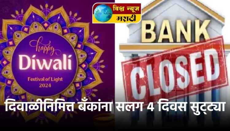 दिवाळीनिमित्त बँकांना सलग 4 दिवस सुट्ट्या देण्यात आल्या आहेत.  वसुबारसपासून दिवाळी सणाला सुरुवात झाली आहे. 29 ऑक्टोबरला धनत्रयोदशी आहे. धनत्रयोदशीपासून दिपोत्सव सुरू होतो. त्यामुळे बँकांच्या दिवाळी सुट्ट्या 31 ऑक्टोबरपासून सुरू होणार आहेत. परंतु वेगवेगळ्या राज्यात सुट्ट्यांची तारीख वेगळी आहे. रिझर्व्ह बँकेकडून या सुट्ट्या जारी केल्या जातात.