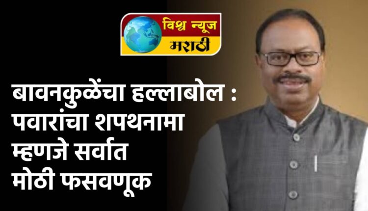 शरद पवारांच्या राजकीय आयुष्यात शपथेला नाही तर खंजीराला महत्व आहे अशी टीका भाजपचे प्रदेशाध्यक्ष चंद्रशेखर बावनकुळे यांनी केली आहे. तसेच शरद पवारांचा शपथनामा म्हणजे जगातील सर्वात मोठी फसवणूक असल्याचेही त्यांनी म्हंटले आहे. आज राष्ट्रवादीच्या शरद पवार गटाचा जाहीरनामा प्रसिद्ध करण्यात आला. त्याला शपथनामा असे नाव देण्यात आले आहे. यावरून बावनकुळे यांनी ट्विट करत निशाणा साधला आहे.