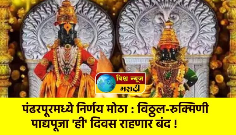 राज्यातील श्री विठ्ठल-रुक्मिणीच्या पाद्यपूजेमूळे श्री विठ्ठलाचे दर्शन थांबू नये. नाताळ, एकादशी तसेच वर्षअखेरच्या सुट्ट्यांमुळे भाविकांची दर्शनासाठी मोठी गर्दी होणार आहे. या भाविकांना जलद व सुलभ दर्शन मिळावे, यासाठी विठ्ठल-रुक्मिणीमातेची पाद्यपूजा सेवा दि. 21 डिसेंबर ते 31 डिसेंबर कालावधीत बंद करण्यात येणार असल्याची माहिती श्री विठ्ठल-रुक्मिणी मंदिर समितीकडून देण्यात आली.