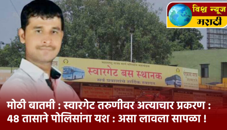 सविस्तर वृत्त असे कि, पुण्यातील स्वारगेट बस स्थानकातील शिवशाही बसमध्ये एका तरुणीवर बलात्कार झाल्याच्या धक्कादायक घटनेने संपूर्ण परिसरात प्रचंड खळबळ उडाली आहे. या प्रकरणातील मुख्य आरोपी दत्तात्रय गाडे हा गेल्या तीन दिवसांपासून फरार होता. नराधम दत्तात्रय हा शिरूर तालुक्यातील गुनाट गावातील उसाच्या शेतात लपून बसला होता. त्याचा ठावठिकाणा शोधण्यासाठी पोलिसांनी 13 टीम तयार केल्या होत्या, तसेच गावात 100 पोलिसांचा कडक बंदोबस्त तैनात करण्यात आला होता. ड्रोन आणि डॉग स्क्वॉडच्या मदतीने कसून शोध घेतल्यानंतर तब्बल 48 तासांच्या अथक प्रयत्नांनंतर पोलिसांनी त्याच्या मुसक्या आवळल्या.