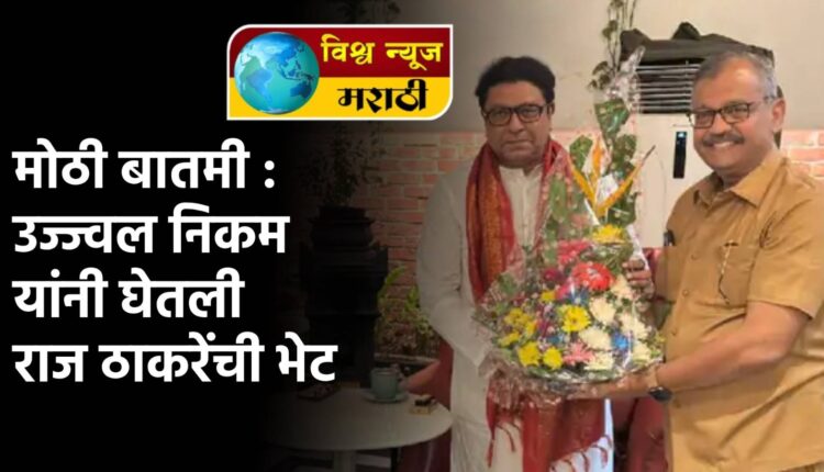 देशात लोकसभा निवडणुकीची धामधूम सुरु असतांना एक मोठी बातमी समोर आली आहे. आज भाजपचे उमेदवार उज्ज्वल निकम यांनी महाराष्ट्र नवनिर्माण सेनेचे अध्यक्ष राज ठाकरे यांची त्यांच्या निवासस्थानी भेट घेतली. उज्ज्वल निकम यांच्यासोबत मुंबई भाजपचे अध्यक्ष आशिष शेलार यांच्यासह अनेक बडे नेते उपस्थित होते.