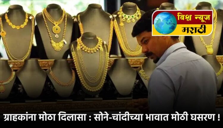 गेल्या काही महिन्यापासून सोन्यासह चांदीच्या दरात मोठी वाढ झाल्यानंतर आता सोने-चांदीच्या भावात मंगळवारी (२८ ऑक्टोबर) मोठी घसरण झाली. सोने चार हजार ३०० रुपयांनी घसरून ते एक लाख १८ हजार ५०० रुपयांवर तर चांदी सहा हजार ५०० रुपयांनी घसरून एक लाख ४७ हजार रुपयांवर आली. यामुळे ग्राहकांना मोठा दिलासा मिळाला आहे.