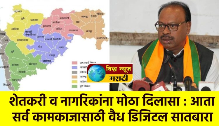 राज्यातील भू-अभिलेख प्रणालीत मोठा बदल करत महसूल विभागाने डिजिटल सातबारा उताऱ्याला पूर्ण कायदेशीर मान्यता दिली आहे. महसूलमंत्री चंद्रशेखर बावनकुळे यांनी सर्व विभागीय आयुक्त, जिल्हाधिकारी, उपविभागीय अधिकारी आणि तहसीलदारांना या निर्णयाची तात्काळ अंमलबजावणी करण्याचे आदेश दिले आहेत.