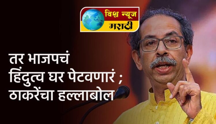 आमच्या आणि तुमच्या हिंदुत्वात खूप मोठा फरक असून आमचं हिंदुत्व चूल, तर भाजपचं हिंदुत्व घर पेटवणारं आहे, अशी टीका शिवसेना (ठाकरे) पक्षाचे प्रमुख तथा माजी मुख्यमंत्री उद्धव ठाकरे यांनी येथे केली. महाविकास आघाडीच्या शुक्रवारी येथील मराठवाडा सांस्कृतिक मंडळाच्या मैदानावर झालेल्या जाहीर सभेत ते बोलत होते.