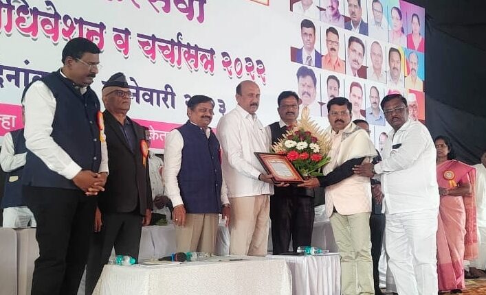 महाराष्ट्र राज्य शिक्षकेत्तर महामंडळाचे ५० वे सुवर्ण महोत्सवी राज्य अधिवेशन सांगली येथील कर्नाळा रोडवरील धनंजय गार्डन येथे झाले. व्यासपीठावर शेतकरी संघटनेचे नेते व माजी खासदार राजू शेट्टी,शिक्षक आमदार जयंत आसगावकर,माजी खासदार तथा ब्रिगेडियर सुधीर सावंत,माजी आमदार भगवानराव साळुंखे,रावसाहेब चोपडे,प्रताप पाटील,शिक्षकेतर संघटनेचे राज्य सरकार्यवाह शिवाजी खांडेकर,प्रदेश अध्यक्ष अनिल माने,विभागीय सचिव गोवर्धन पांडुळे, खंडेराव जगदाळे,राज्य उपाध्यक्ष श्रीशैल तळवार,सांगली जिल्हाध्यक्ष मकरंद कुलकर्णी,जिल्हा बँकेचे संचालक प्रकाश जमदाडे,कार्याध्यक्ष मोरेश्वर वासेकर आदी मान्यवर उपस्थित होते. व्यासपीठावरील मान्यवरांच्या हस्ते पत्रकार चेतन जाधव यांना सन्मानचिन्ह,शाल व बुके देऊन लोकाभिमुख आदर्श पत्रकार पुरस्कार प्रदान करण्यात आला. या पुरस्कार वितरण सोहळ्यास जिल्हाध्यक्ष रविकांत सुर्वे,सचिव मुस्ताक शेतसंदी,कोषाध्यक्ष महेश रामशेट्टी,अक्कलकोट येथील विकास तळवार,वसंत आरेनवरू,धर्मराज आरबळे,विकास नडगिरे,हनमंतराव पाटील,तालुका सचिव चंद्रकांत हरळय्या,अनिल देशेट्टी,ए.एल. मकानदार आदीसह अनेक शिक्षकेतर कर्मचारी उपस्थित होते.