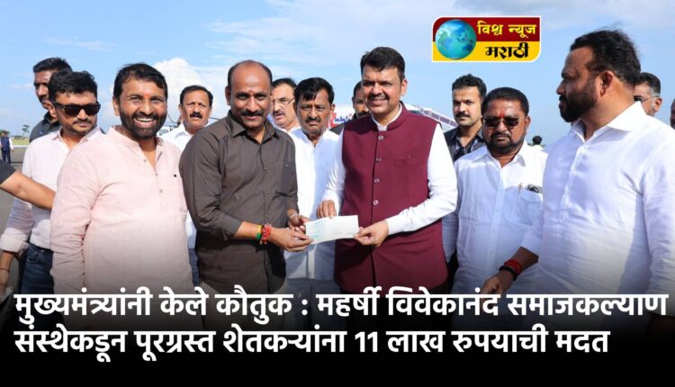 मुख्यमंत्र्यांनी केले कौतुक : महर्षी विवेकानंद समाजकल्याण संस्थेकडून पूरग्रस्त शेतकऱ्यांना ११ लाख रुपयाची मदत
