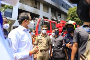 मुंबई दि 26: भांडुप येथील ड्रीम मॉलमध्ये लागलेल्या आगीमुळे सनराईज रुग्णालयातील रुग्णांच्या झालेल्या मृत्यूंची मुख्यमंत्री उद्धव ठाकरे यांनी गंभीर दखल घेतली असून प्रत्यक्ष घटनास्थळी जाऊन त्यांनी पाहणीही केली. यावेळी माध्यमांशी बोलताना त्यांनी मृतांच्या वारसांना प्रत्येकी ५ लाखांची मदत जाहीर केली त्याचप्रमाणे अशा रीतीने राज्यभरात ज्या मॉल्स किंवा इतर वास्तूंमध्ये कोविड रुग्णांच्या उपचारासाठी रुग्णालये सुरु आहेत त्या ठिकाणच्या अग्नीसुरक्षेची तपासणी तात्काळ करण्याचे निर्देशही त्यांनी दिले.