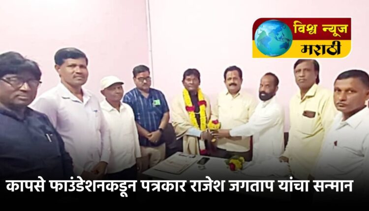 पुणे येथे पत्रकार दिना निमित्त राज्यस्तरीय बाळशास्त्री जांभेकर आदर्श पत्रकार वितरण समारंभात अक्कलकोट येथील पत्रकार राजेशकुमार जगताप यांना राज्यस्तरीय आदर्श पत्रकार म्हणून सन्मानित करण्यात आले होते. त्याची दाखल घेऊन कापसे फाउंडेशनच्या वतीने राजेशकुमार जगताप यांचा यथोचित सत्कार करून गौरव करण्यात आला. या कार्यक्रमाच्या अध्यक्षस्थानी पूज्य श्री शेख नुरदीन बाबा दर्ग्याचे सज्यादे अहमदपाशा पिरजादे हे होते.प्रा.सूर्यकांत कडबगावकर, शिवशरण खूबा यांची प्रमुख उपस्थिती होती.