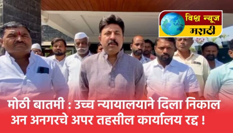 जिल्ह्यातील मोहोळ तालुक्यातील अनगर येथे झालेले अपर तहसील कार्यालय रद्द करण्यात आले आहे. उच्च न्यायालयात दाखल करण्यात आलेल्या याचिकेमुळे हा आदेश कोर्टाने दिला आहे. राष्ट्रवादी अजित पवार गटाचे तालुक्याचे नेते उमेश पाटील आणि सहकाऱ्यांनी या निकालानंतर आनंद व्यक्त करत जल्लोष साजरा केला आहे. अनगर येथील अपर तहसील कार्यालय रद्द झाल्याचा निकाल हा माजी आमदार राजन पाटील यांच्यासाठी धक्का मानला जात आहे.