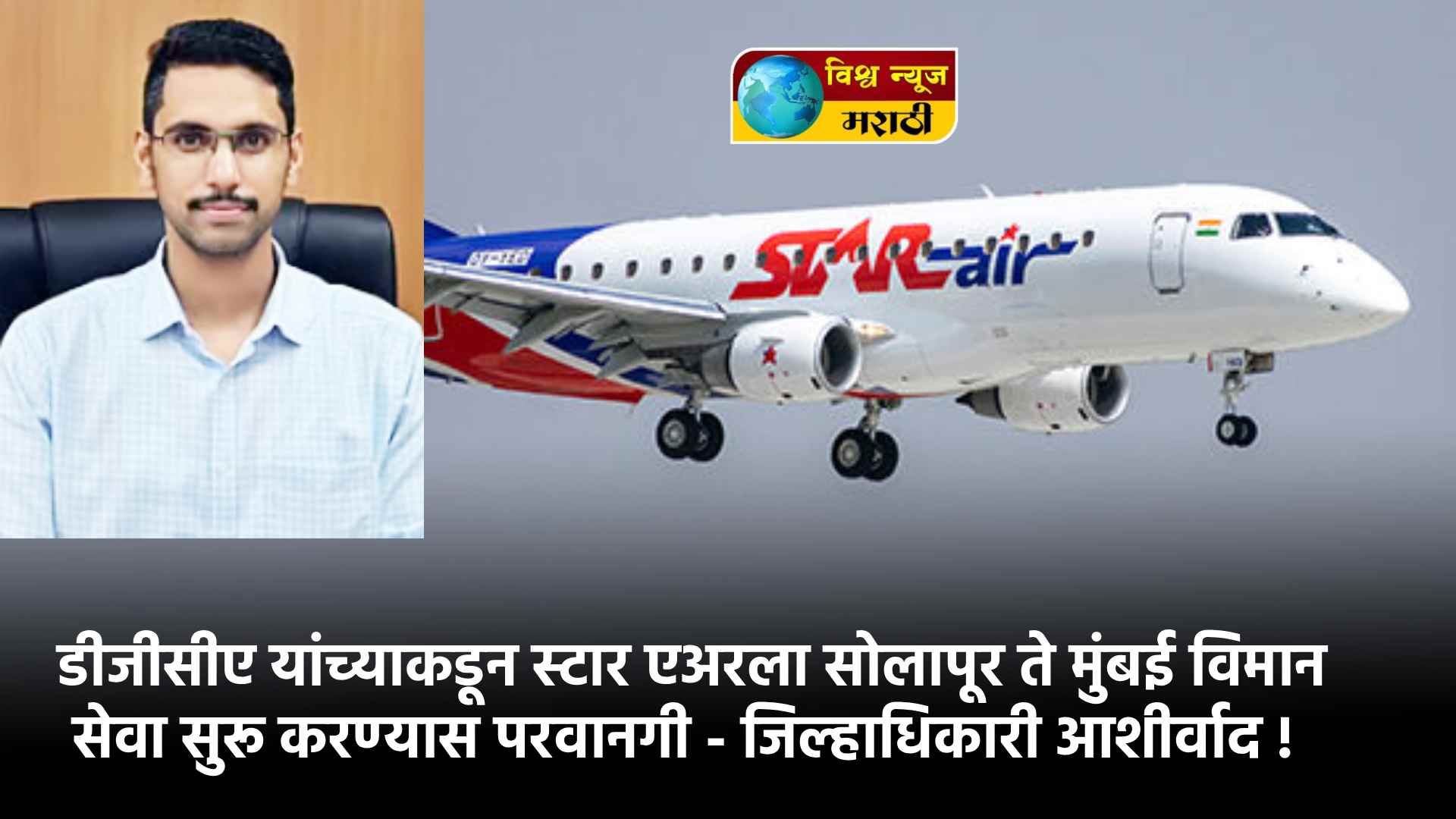 डीजीसीए यांच्याकडून स्टार एअरला सोलापूर ते मुंबई विमान सेवा सुरू करण्यास परवानगी – जिल्हाधिकारी आशीर्वाद !