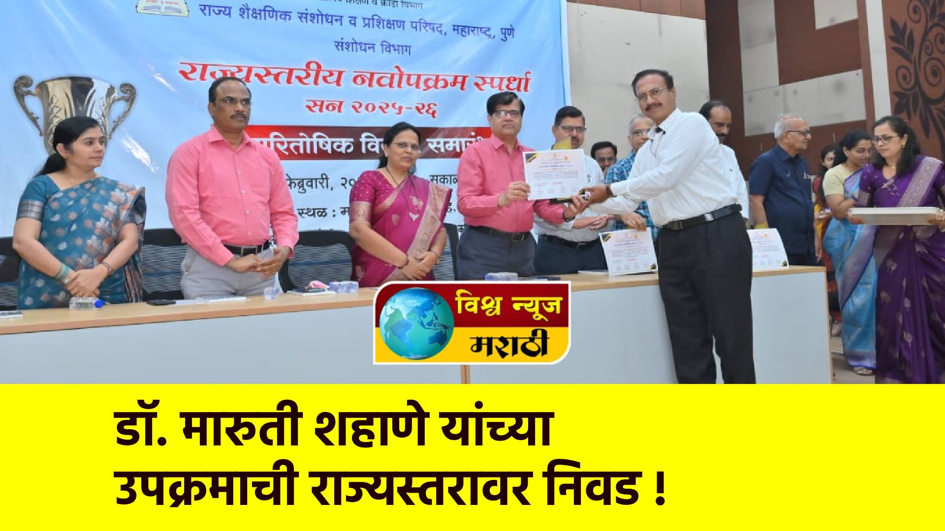 नवोपक्रम स्पर्धेचा परितोषिक वितरण समारंभ SCERT च्या महात्मा फुले सभागृहामध्ये मंगळवार दि. 24 फेब्रुवारी 2026 रोजी झाला. या वेळी आदरणीय हेमंत वसेकर ( संचालक),इब्राहिम नदाफ ( उपसंचालक ),कमला देवी आवटे ( सहसंचालक), डॉ.दत्तात्रय थिटे (संशोधन विभाग प्रमुख),ज्येष्ठ शिक्षण तज्ञ डॉ. ह.ना.जगताप, समन्वयक सतीश सातपुते यांची प्रमुख उपस्थिती होती.विशेष म्हणजे याच वर्षी विज्ञान व गणितातील जादूगार, त्याच बरोबर इन्स्पायर अवॉर्ड मानक या स्पर्धांमध्ये राज्यस्तरावर सरांच्या उपक्रमाची निवड झाली होती.