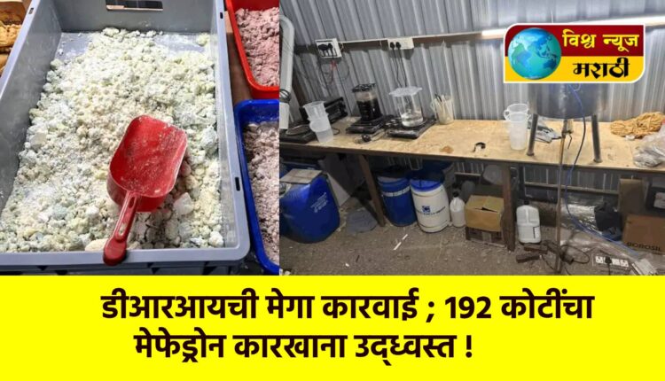 महसूल गुप्तवार्ता संचालनालयने विदर्भातील वर्धा जिल्ह्यात आतापर्यंतची सर्वात मोठी अमली पदार्थविरोधी कारवाई करत 192 कोटी रुपयांचा मेफेड्रोन निर्मिती कारखाना उद्ध्वस्त केला आहे. ‘ऑपरेशन हिंटरलँड ब्रू’ या कोडनेमखाली राबवलेल्या मोहिमेत कारंजा (घाडगे) तालुक्यातील निर्जन जंगलात लपवून ठेवलेला गुप्त ड्रग्ज प्लांट सापडला.