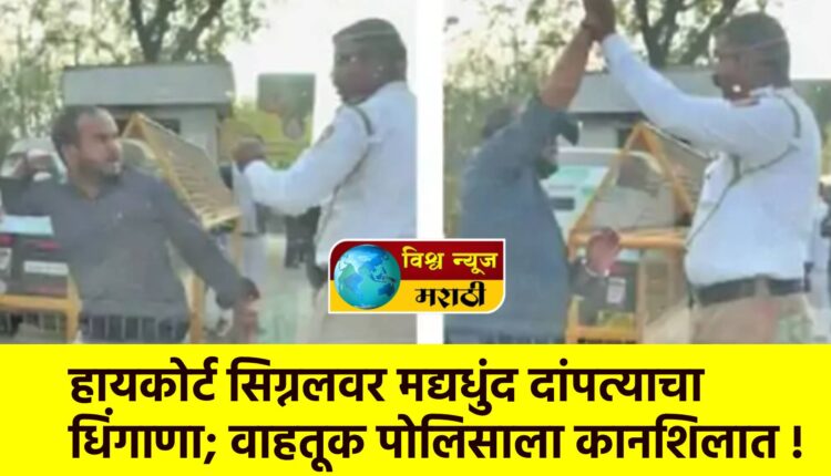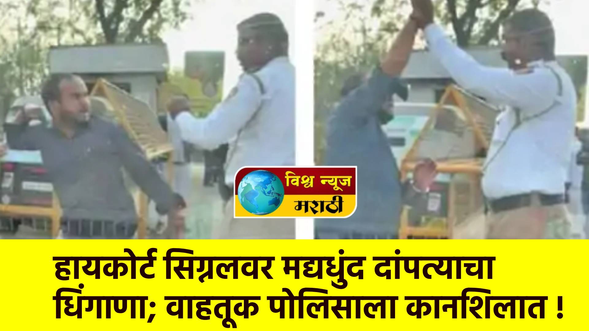 जालना रोडवरील हायकोर्ट सिग्नल परिसरात रविवारी (२२ फेब्रुवारी) सायंकाळी कर्तव्यावर असलेल्या वाहतूक पोलिसाला मद्यधुंद दुचाकीस्वार आणि त्याच्या पत्नीने भररस्त्यात मारहाण केल्याची संतापजनक घटना घडली. विशेष म्हणजे, मदतीसाठी वारंवार संदेश पाठवूनही पोलिसांना घटनास्थळी पोहोचण्यासाठी तब्बल एक तास लागला. या प्रकरणी सोमनाथ मुरलीधर गिरी (वय २७, रा. चांदननगर, ता. नेवासा) आणि त्याच्या पत्नीविरुद्ध गुन्हा नोंदवण्यात आला आहे.