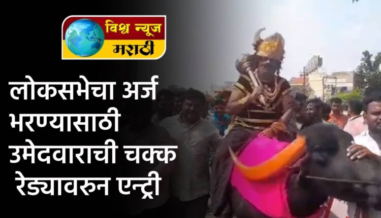 देशभर लोकसभा निवडणुकांची रणधुमाळी सुरू असून लोकसभा निवडणुकीत वेगवेगळे जाहीरनामे, भाषणे, मतदारांना आकर्षित करण्यासाठी दिलेल्या हटके आश्वासनांची चर्चा होत असते. अशातच माढा लोकसभा मतदार संघातून उमेदवारी अर्ज दाखल करण्यासाठी एक उमेदवार चक्क रेड्यावर बसून आल्याचे पाहायला मिळाले. या एन्ट्रीची सध्या चांगलीच चर्चा होत आहे.