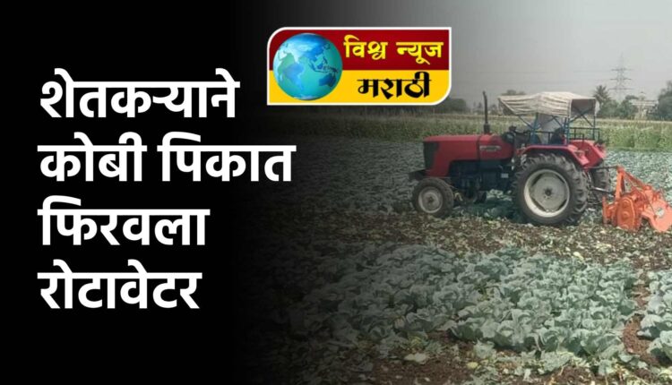 राज्यातील अनेक भागात शेतकऱ्यानी कर्जमाफ होणार असल्याची आशा होती मात्र ती आशा मावळल्यानंतर अनेक शेतकर्यांनी आपले आयुष्य संपविल्याच्या घटना ताज्या असतांना आता सिन्नर तालुक्यातील विंचुरी दळवी येथे गट नं. 490 या ठीकाणी त्र्यंबक सखाराम शेळके या शेतकर्याची शेती असून एक एकर क्षेञात त्यांनी कोबी पिकाची लागवड केली. पिक चांगले येऊनही बाजारात कवडीमोलाने कोबी विकला जात असल्याने अखेर त्यांनी उभ्या पिकावर रोटावेटर फिरवला.