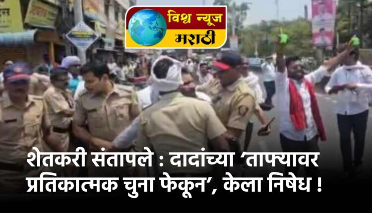 शेतकरी संतापले : दादांच्या ‘ताफ्यावर प्रतिकात्मक चुना फेकून’, केला निषेध !