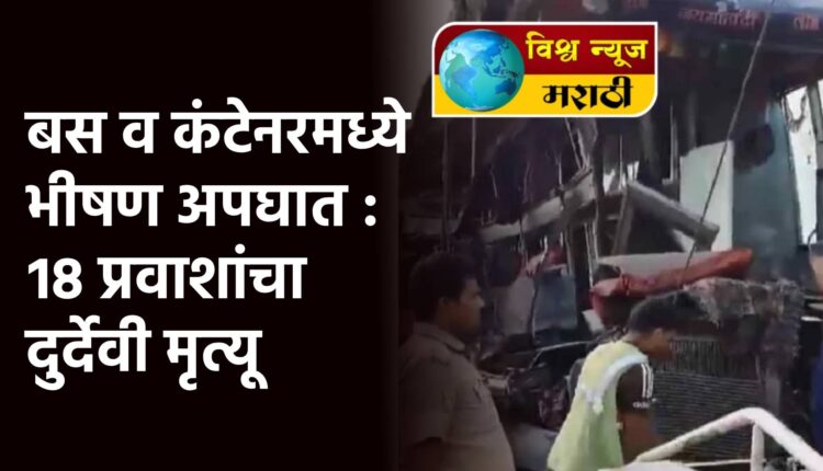 बस व कंटेनरमध्ये भीषण अपघात : १८ प्रवाशांचा दुर्देवी मृत्यू
