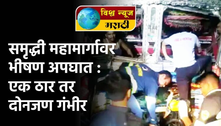 राज्यातील अनेक महामार्गावर अपघाताच्या घटना सातत्याने घडत असतांना नुकतेच समृद्धी महामार्गावर उभ्या असलेल्या कंटेनरला मागून येणाऱ्या ट्रकने धडक दिली आहे. या अपघातामध्ये कंटेनर चक्काचूर झाला आहे. तर ट्रकच्या धडकेत एक ठार तर दोनजण गंभीर जखमी झाले आहे.