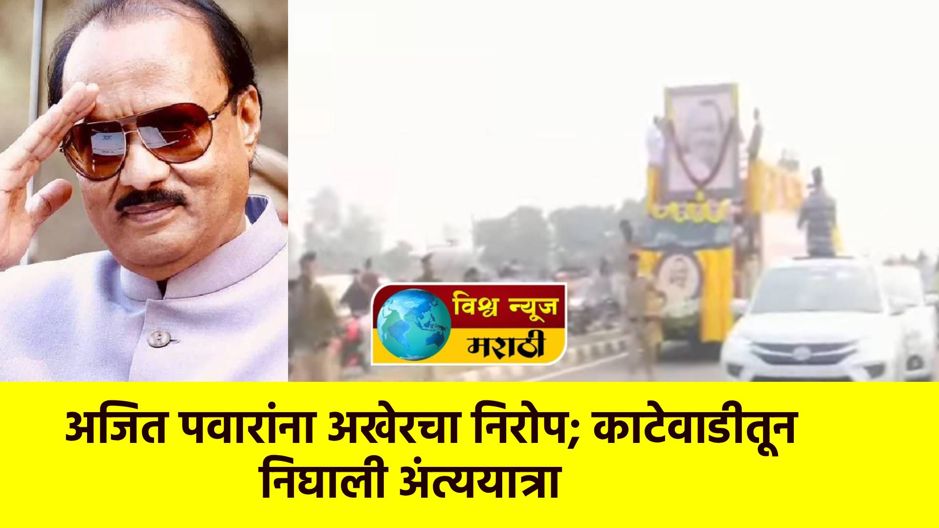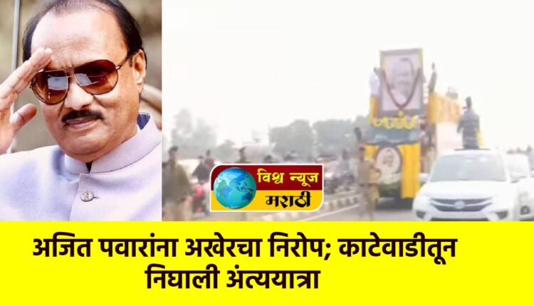 राज्याचे उपमुख्यमंत्री अजित पवार यांचे पार्थिव त्यांच्या मूळगावी काटेवाडी येथील निवासस्थानी ठेवण्यात आले असून, कुटुंबीय, पक्षाचे नेते, कार्यकर्ते तसेच नागरिक मोठ्या संख्येने अंत्यदर्शनासाठी उपस्थित आहेत. अंत्यदर्शनानंतर अंत्ययात्रेला सुरुवात होणार आहे.