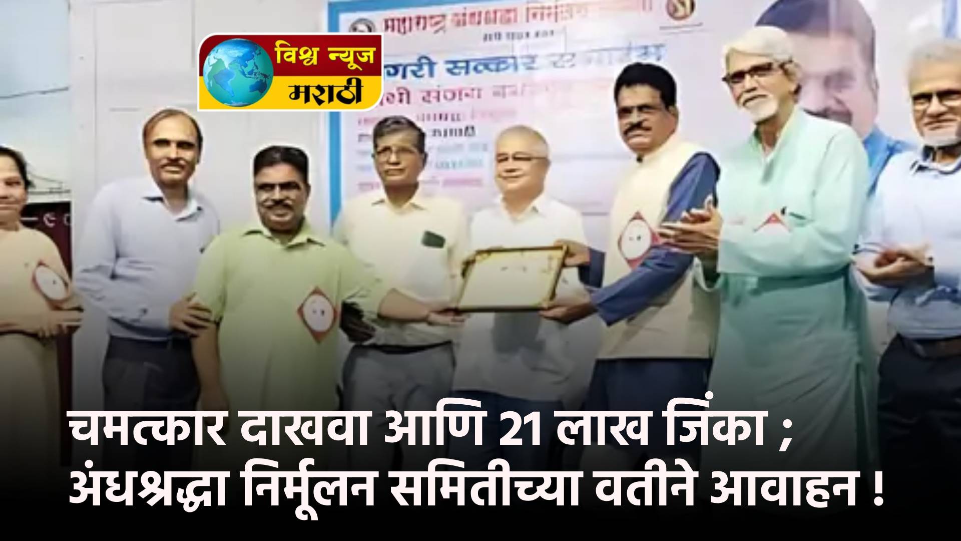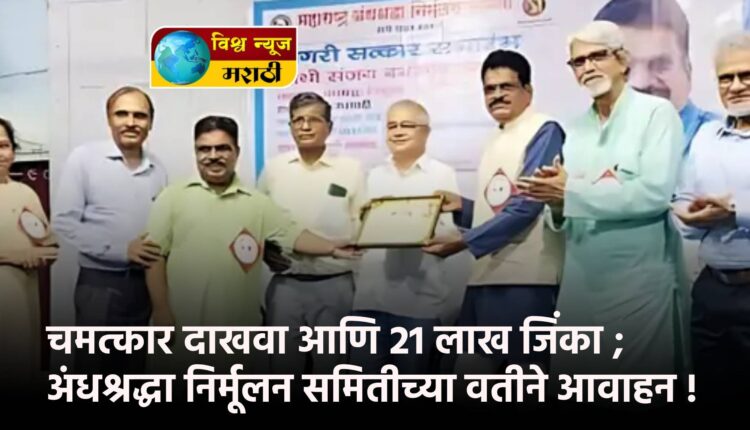 चमत्कार दाखवा आणि 21 लाख जिंका, असे आव्हान महाराष्ट्र अंधश्रद्धा निर्मूलन समितीच्या वतीने देण्यात आले आहे. देव धर्माच्या नावाखाली चमत्कार करणाऱ्या बाबा-बुवा तसेच मांत्रिकांकडून होणाऱ्या फसवणुकीला तसेच बुवाबाजीला आळा घालण्यासाठी अंधश्रद्धा निर्मूलन समितीने हे आव्हान दिले आहे. सुरुवातीला ही रक्कम 5 लाख होती, नंतर 10 लाख, 15 लाख व आता 21 लाखांवर पोहोचली आहे. पण आजपर्यंत कोणीही हे आव्हान स्वीकारले नाही, असे अंनिसचे राज्य कार्याध्यक्ष संजय बनसोडे यांनी स्पष्ट केले आहे.