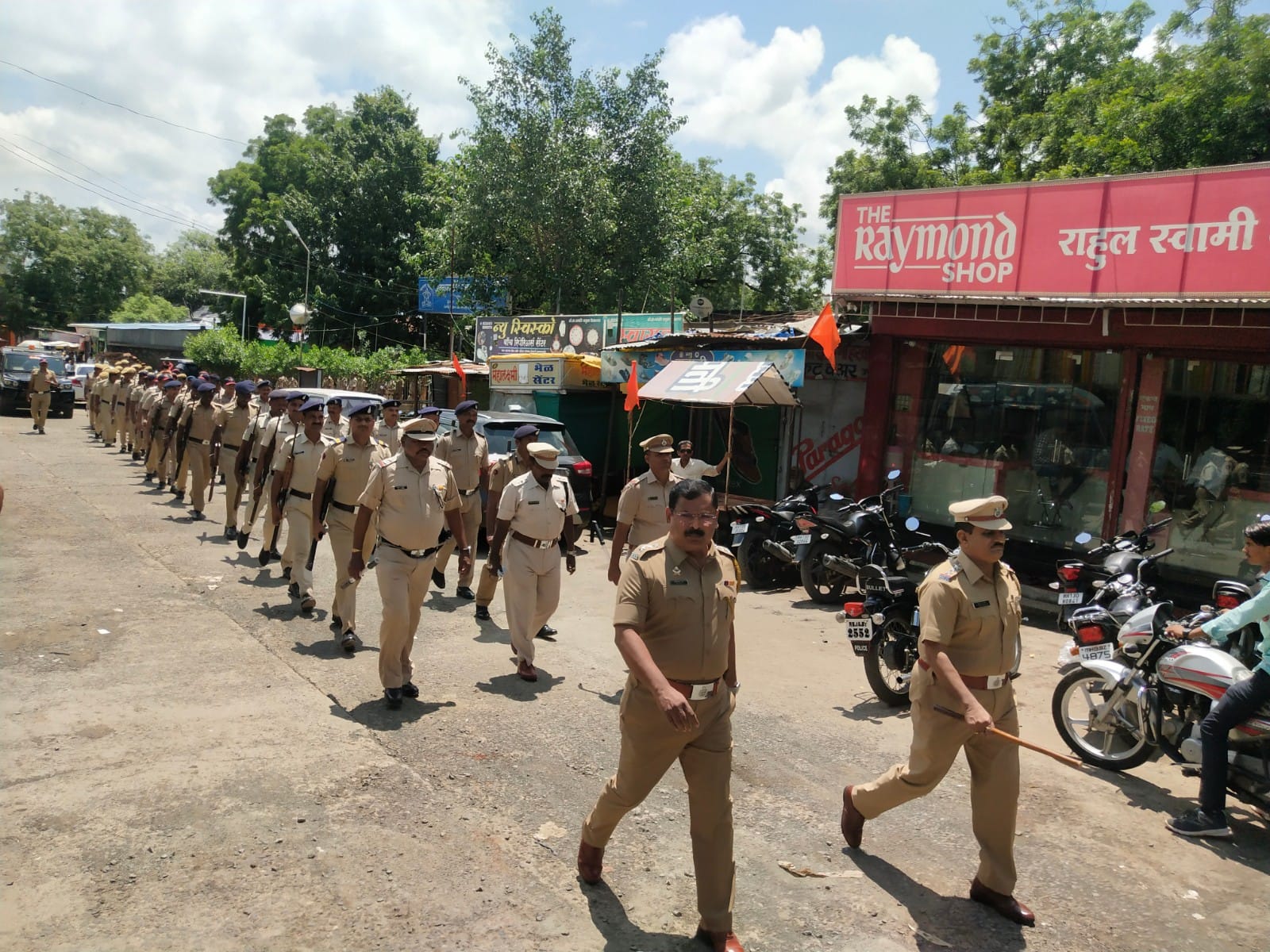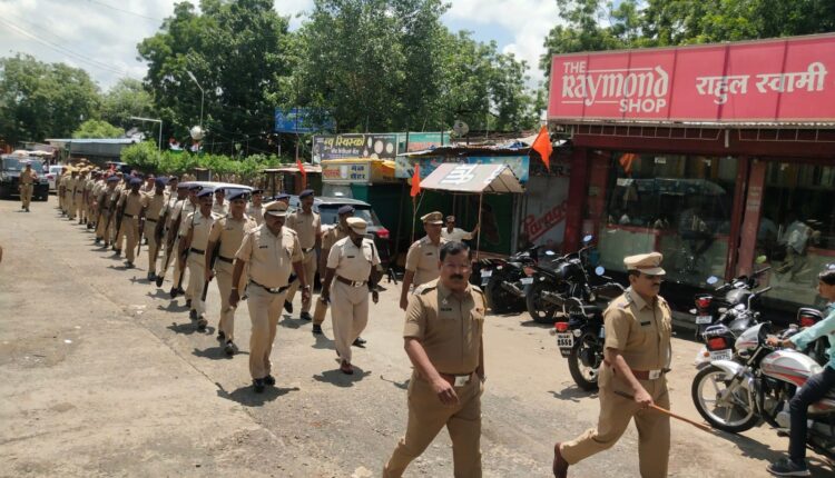 अक्कलकोट, दि.७ : गणेश विसर्जनाच्या पार्श्वभूमीवर बुधवारी अक्कलकोट शहरातील प्रमुख मार्गावर पोलिसांचे पथसंचलन करण्यात आले.यावेळी आपत्कालीन परिस्थितीत निर्माण झालेल्या स्थितीवर मात कशी करावी यासाठी पोलिसांचे दंगा नियंत्रण प्रात्यक्षिक घेण्यात आले.उपविभागीय पोलीस अधिकारी राजेंद्र सिंह गौर यांच्या मार्गदर्शनाखाली हे पथसंचलन पार पडले.अक्कलकोट शहरातील मिरवणूक मार्ग म्हणजे पोलीस ठाणे,विजय कामगार चौक,मंगरुळे पेट्रोलपंप,बागवान मज्जीद,करंजा चौक,मक्का मजीद,सावरकर चौक,मुजावर गल्ली,फतेसिंह चौक मार्गे पथ संचलन घेण्यात आले.त्याच दरम्यान