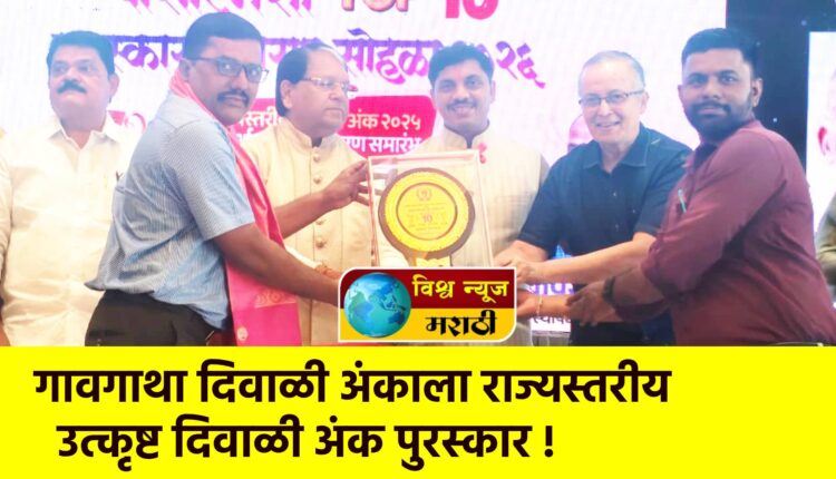 यावेळी गावगाथा दिवाळी अंकाचे संपादक धोडपा नंदे व दत्ता नंदे यांनी उपस्थित राहून पुरस्कार स्वीकारला.
