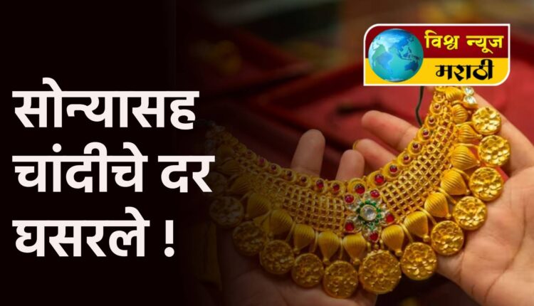 गेल्या काही दिवसांपासून ९३ हजार रुपयांवर असलेल्या चांदीच्या भावात घसरण होत असून या दोन दिवसांत ती तीन हजार रुपयांनी घसरली आहे. शुक्रवारी ९१ हजार रुपयांवर आल्यानंतर शनिवारी पुन्हा चांदीत एक हजार रुपयांची घसरण झाली व ती ९० हजार रुपये प्रतिकिलोवर आली आहे. दुसरीकडे, सोन्याच्याही भावात दोन दिवसांत ९०० रुपयांची घसरण होऊन ते शनिवारी ७३ हजार ६०० रुपये प्रतितोळ्यावर आले आहे.