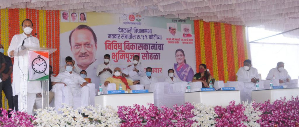 आज देवळाली विधानसभा मतदारसंघातील विविध विकास कामांचा भूमिपूजन शुभारंभ उपमुख्यमंत्री अजित पवार यांच्या हस्ते करण्यात आला त्यावेळी ते बोलत होते. यावेळी राज्याचे अन्न व नागरी पुरवठा तथा नाशिक जिल्हा पालकमंत्री छगन भुजबळ, आमदार सरोज अहिरे, दिलीप काका बनकर, नितीन पवार, माजी खासदार देविदास पिंगळे, माजी आमदार जयंत जाधव, सय्यद पिंपरी गावचे सरपंच मधुकर ढिकले यांच्यासह उपमुख्यमंत्री यांचे विशेष कार्य अधिकारी अनिल ढिकले आदी पदाधिकारी उपस्थित होते.
